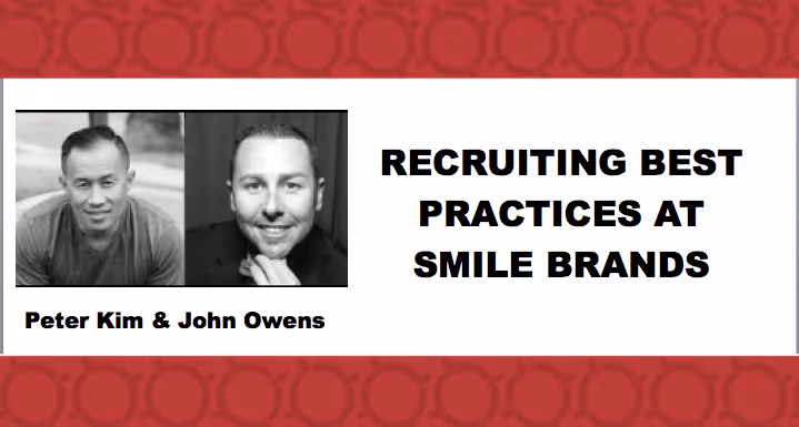 Once a practice starts to scale, talent acquisition becomes a crucial element. There are important steps in the recruiting and on-boarding process that you must be aware. If you would like to understand how large groups practices think about associates, take them on board, and integrate them into the company culture, you will be very interested in Peter Kim and John Owens’ presentation at the next DEO Associate Summit in Houston, November 2-4th 2017. Peter Kim is Vice President of talent acquisition at Smile Brands, John Owens is Senior Manager of doctor recruitment at Smile Brands. Watch below a short video interview where Dr. Cooper asked them to give us a snapshot of what we will learn from their presentation at the DEO Associate Summit. Recruiting Best Practices at Smile Brands