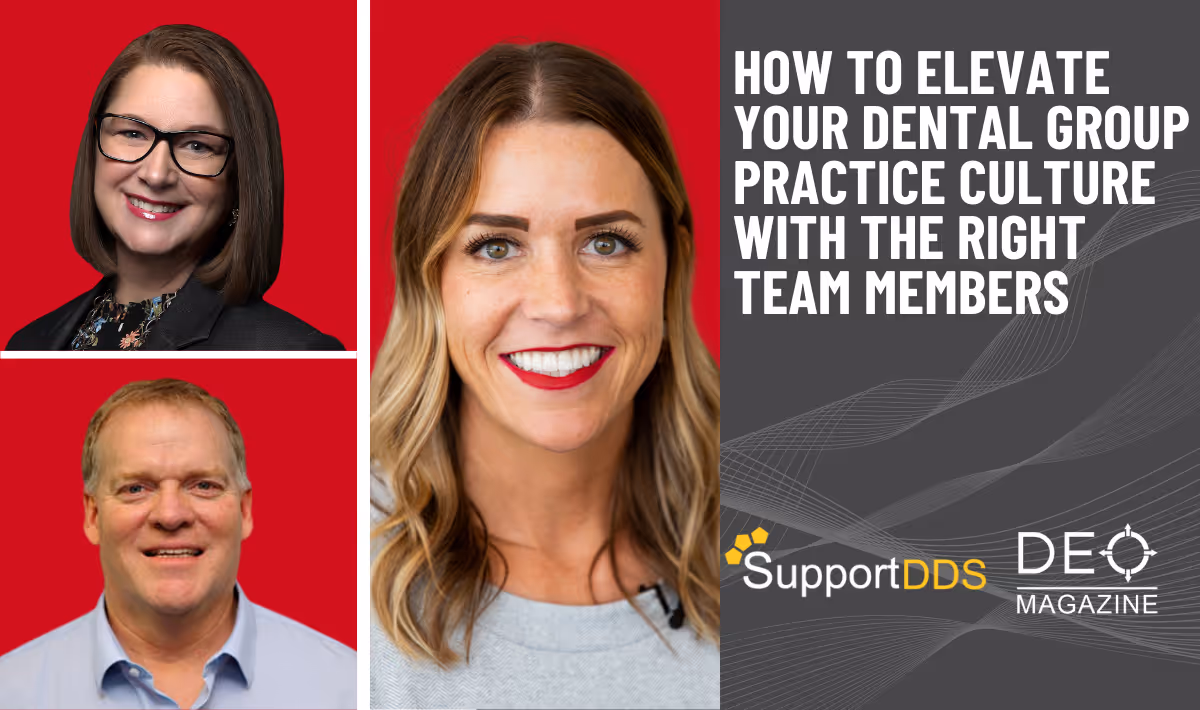 Join Brenda McNulty, Dental Group Director of SupportDDS, J.W. Oliver Jr., Managing Partner of SupportDDS, and Josey Sewell, Head of Implementation & Coaching / Partner of The DEO as they discuss how to elevate your dental group practice's culture with the right team members.