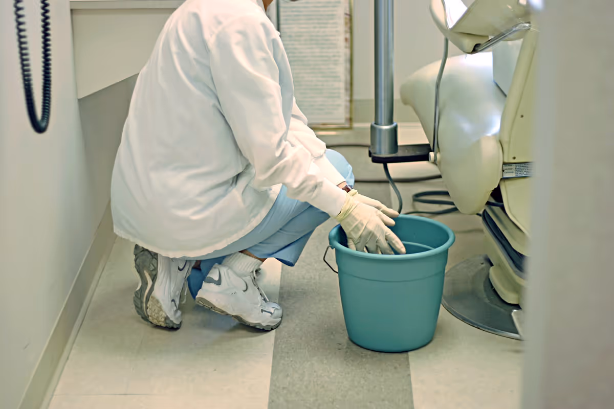- We disinfect the surfaces in the operatory between patients. Between patients, the dental team should disinfect all the surfaces they are likely to touch during treatment. This eliminates the possibility of a dentist or auxiliary dental care provider transferring germs from a contaminated surface to the patient. To save time in preparing the treatment room for the next patient (and hopefully minimize time in the waiting area), many practices choose to cover surfaces, such as light handles, tubing and chair controls, with a plastic barrier film that keeps the surface underneath free of debris. Instead of disinfecting these surfaces between patients, the dentist or dental team member simply removes and discards the barrier and places a new, clean barrier on the surface for the next patient.