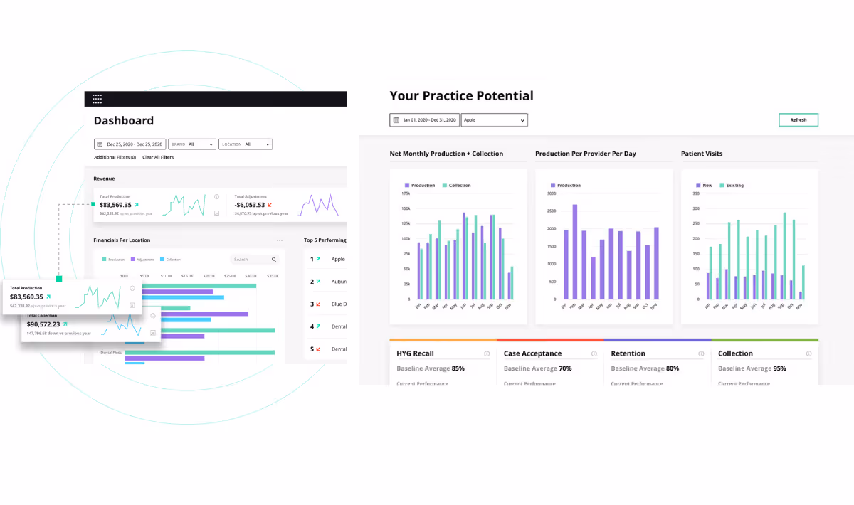 Dental practices have tremendous amounts of data stored in practice management systems, such as Henry Scheins market-leading Dentrix, Dentrix Ascend, and Dentrix Enterprise, as well as systems for patient relationship management, finance, marketing, and more. Unfortunately, many dental practices do not yet consolidate and analyze this disparate data. Jarvis simplifies the collection of data from multiple sources and organizes it so the information can be presented in real-time reports, dashboards, and other methods. Jarvis analytics tools can also help identify the impact positive changes may have on projected revenue, including hygiene recall, patient retention, case acceptance, and collection.