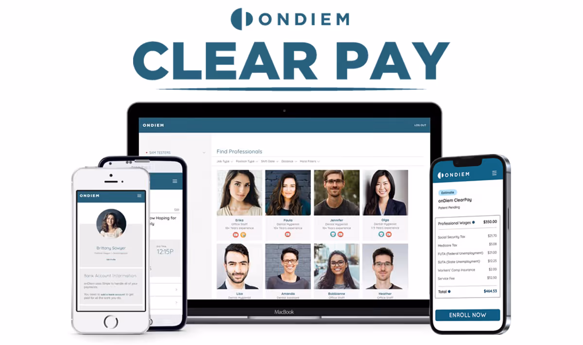 Wages, and associated human resources costs, are usually the single largest expense for dental practices. Compounded with inflation and wage creep, these expenses are a foundational area of focus for dental practices to maintain profitability. onDiems CEO, Joe Fogg, observed these obstacles the dental industry is facing, and was driven to provide a solution that not only increases profitability and reduces costs for dental practices, but also addresses the need to attract and retain qualified dental professionals.