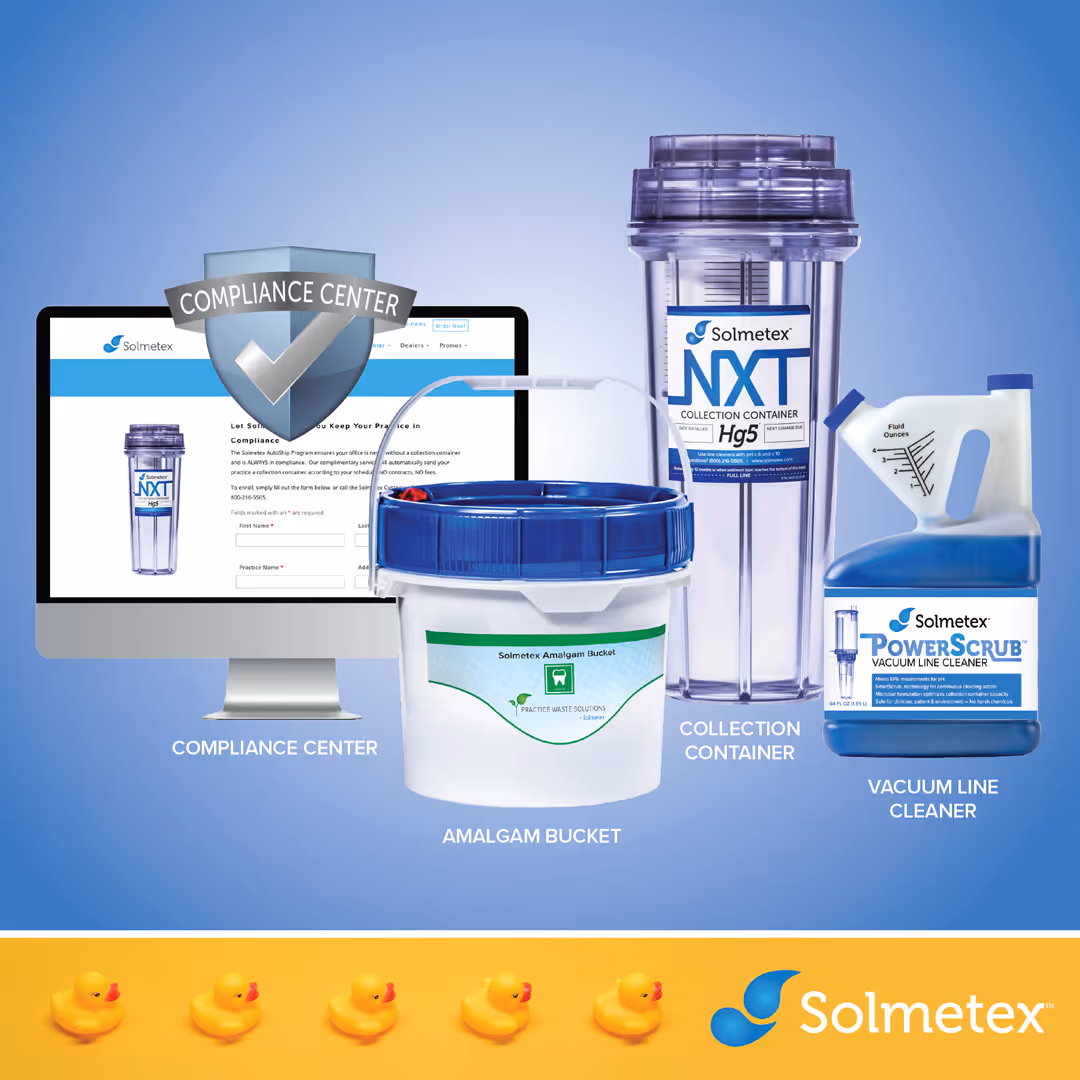The Solmetex Maintenance Program is designed to alleviate the guesswork associated with the Dental Rule and ensures that all practices are in constant compliance.