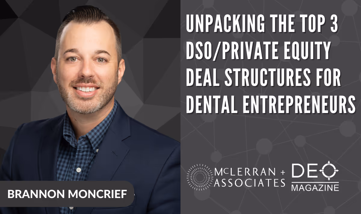 Do you find the complexities of DSO and private equity deal structures confusing? Join us for our upcoming webinar to gain a comprehensive understanding of the 3 most common deal structures currently shaping today's market. You'll learn the pros and cons of each deal type, gain insight into the differing approaches of strategic versus financial buyers, including how they calculate EBITDA and structure deals, plus explore anticipated trends in buyer demand and recapitalization events for the coming year. This webinar is essential for dental entrepreneurs looking to strategically navigate their business decisions in a dynamic market.